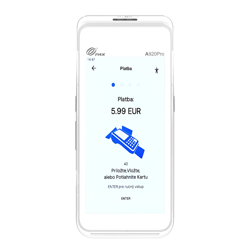 Zariadenie je vybavené výkonnou batériou s kapacitou 5150 mAh, ktorá zabezpečuje spoľahlivú prevádzku počas celého pracovného dňa bez potreby neustáleho nabíjania. PAX A920 Pro tak poskytuje maximálnu flexibilitu bez kompromisov.